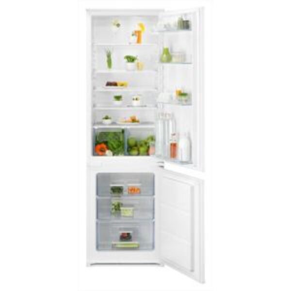 Electrolux Frigorifero Combinato Lns5le18s Classe E 271 Lt Electrolux Frigorifero combinato – Incasso built-in (BI) – Capacità netta 271 Lt – Classe energetica E – Statico – 3 Cassetti – Il frigocongelatore 500 ColdSense riporta la giusta temperatura all’interno del vano frigorifero dopo l’apertura della porta, grazie a sensori elettronici precisi. Questo aiuta a evitare sbalzi di temperatura e spreco di cibo, per una protezione completa degli alimenti. ColdSense protegge gli alimenti ripristinando velocemente la temperatura La Tecnologia ColdSense riporta la giusta temperatura all’interno del vano frigorifero dopo l’apertura della porta, grazie a sensori elettronici precisi. Questo aiuta a evitare sbalzi di temperatura e spreco di cibo, per una protezione completa degli alimenti. Con la Tecnologia LowFrost, non dovrai più sbrinare il frigocongelatore così spesso ll sistema integrato LowFrost mantiene la temperatura del frigocongelatore in modo da evitare la formazione di ghiaccio, per migliori prestazioni e meno manutenzione. Conservazione precisa degli alimenti con controllo elettronico interno Controlla le condizioni di conservazione dei tuoi ingredienti con il controllo elettronico interno. Gli indicatori LED ti mostrano comodamente la temperatura. Cassetto con controllo dell’umidità, per verdure sempre fresche Goditi deliziose verdure con il nostro cassetto di controllo dell’umidità. Gestendo l’umidità nell’aria, crea l’ambiente migliore per conservare il cibo. La chiusura delle prese d’aria crea lo spazio ideale per la conservazione di frutta e verdura freschi.