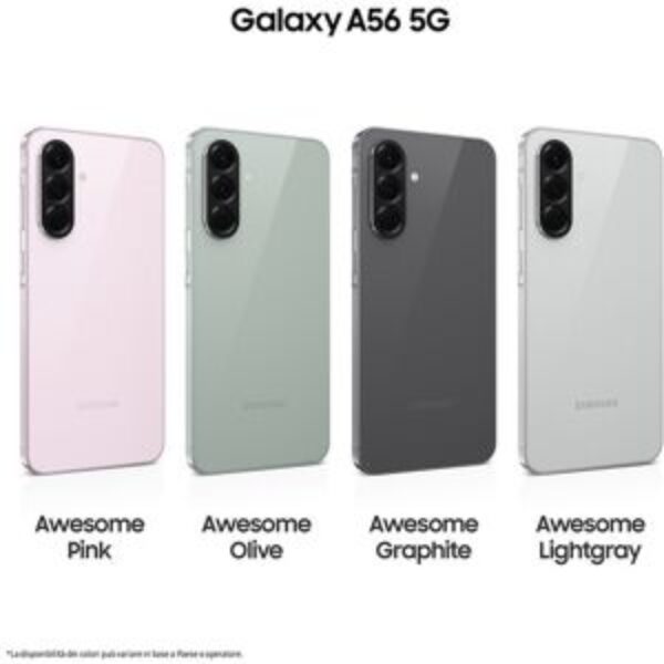 Dettagli Prodotto: Samsung Galaxy A56 5G, Smartphone con Funzioni intelligenti, Display Super AMOLED 6.7”, 8GB RAM, 128GB, Camera 50MP, Batteria 5.000 mAh, IP67, Awesome G Samsung